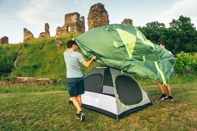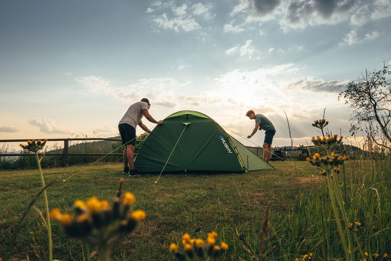The Bizam 2 Plus tent from the Outdoor range is ideal for camping, weekend getaways to the countryside, bicycle touring, or light backpacking. Reasons to like it: it’s lightweight, space-saving, and ready to use, which makes it a great choice for spur-of-the-moment trips. The double-skin freestanding tent with poles on the inside provides room for two adults.