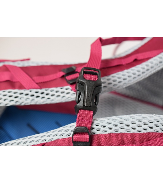 It’s a technical spacer mesh. The mesh is firm, breathable, and highly malleable, which considerably reduces its adherence to your back when you’re sweating. Another advantage is the low weight in relation to the total volume. Added to which it doesn’t absorb moisture, and is perfectly elastic and anti-allergenic.