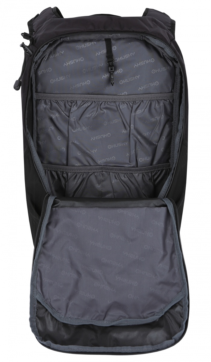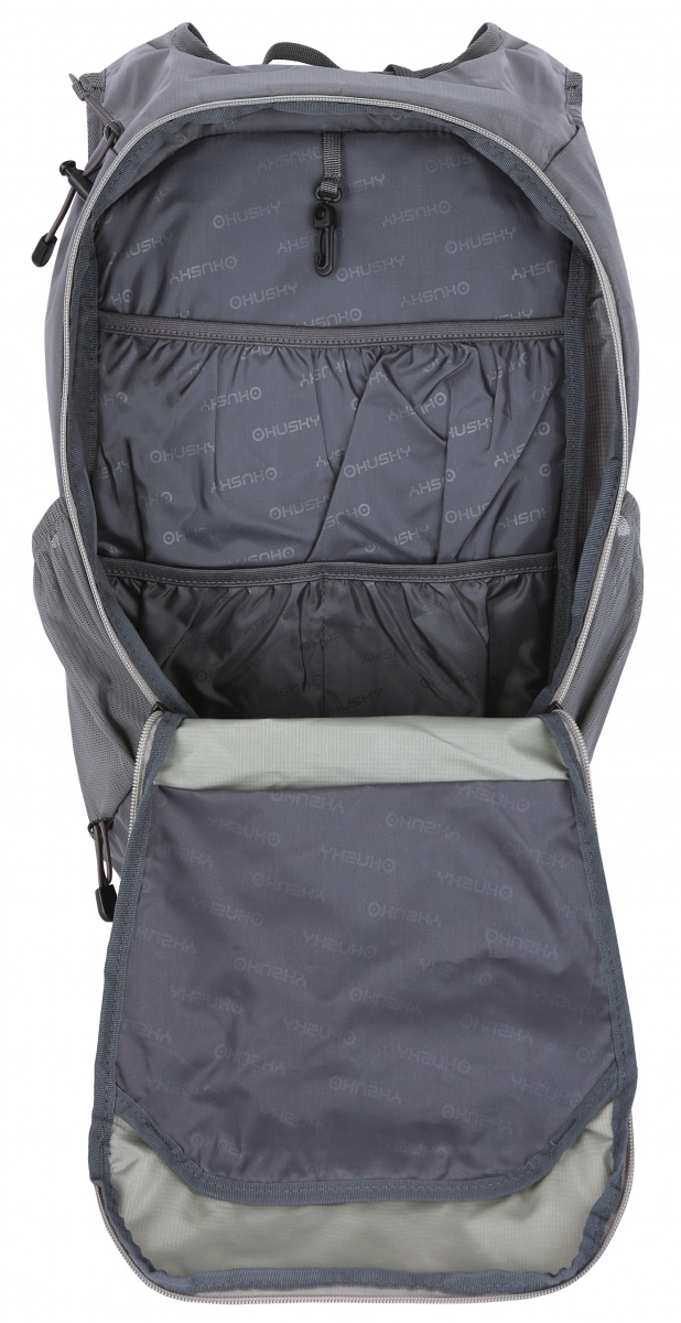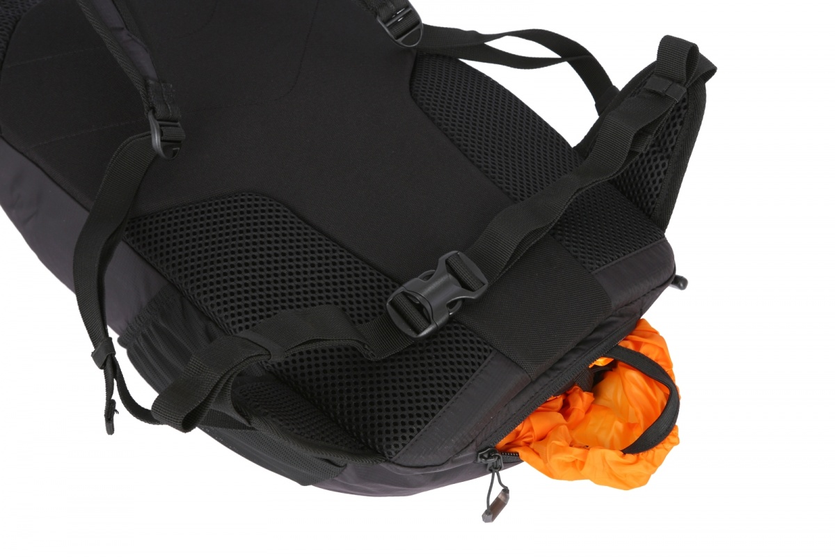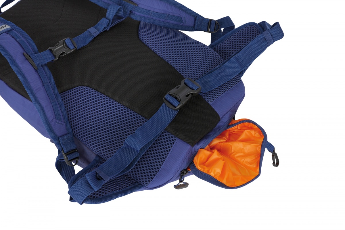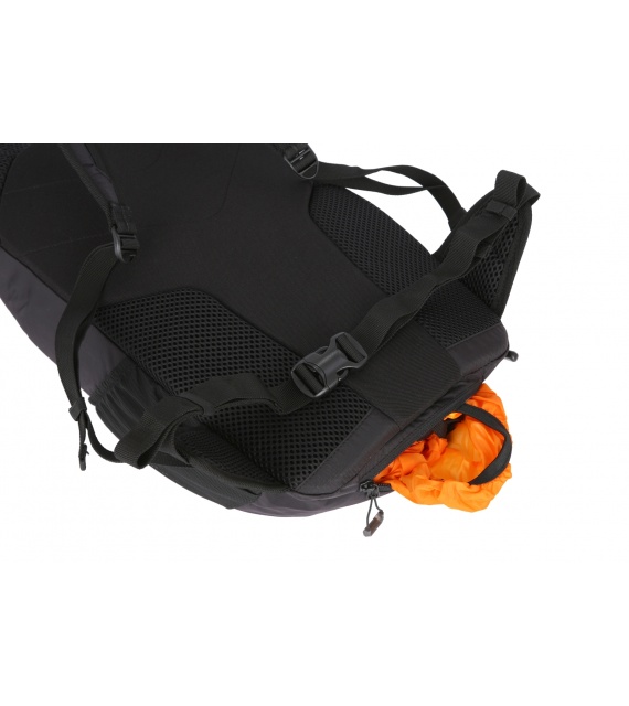 • Peten backpack equipment: 1 main compartment, pocket for small items, chest and hip straps, side elastic pockets, rain cover, internal organizer, trekking pole attachments, reflective elements.