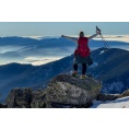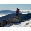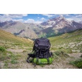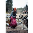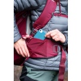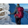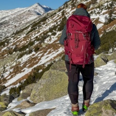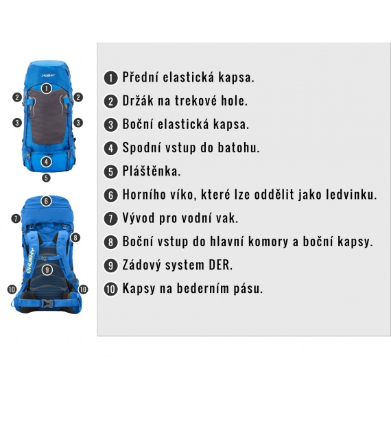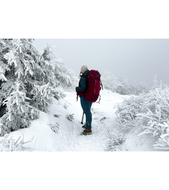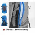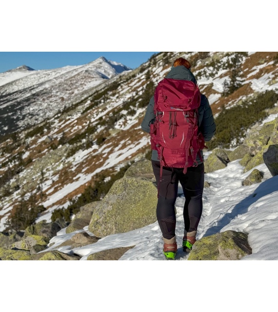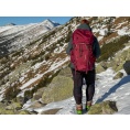 Features of the Rony backpack: DER back system with duralumin reinforcements; breathable padding on anatomically shaped shoulder and waist straps; 2 main compartments with side access to the backpack; elastic front pocket; chest strap; side and bottom compression straps; holders for skis or other gear; height-adjustable top lid with pocket; removable top lid that may be used as a bum bag; elastic side pockets; hydration bladder compatible; rain cover; reflective elements; whistle.