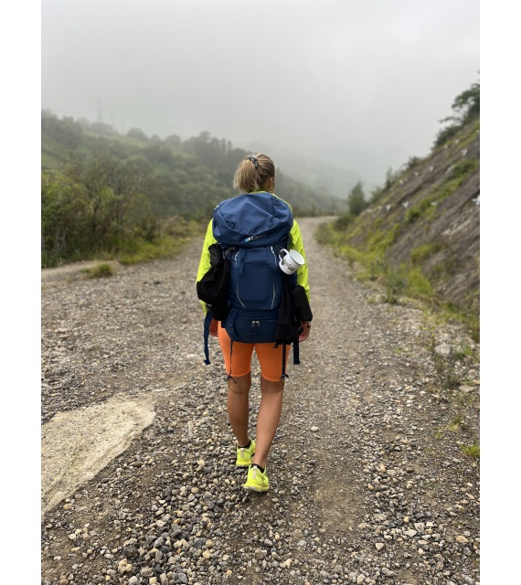 It’s a technical spacer mesh. The mesh is firm, breathable, and highly malleable, which considerably reduces its adherence to your back when you’re sweating. Another advantage is the low weight in relation to the total volume. Added to which it doesn’t absorb moisture, and is perfectly elastic and anti-allergenic.