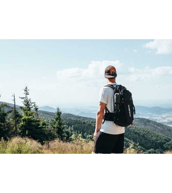 It’s a technical spacer mesh. The mesh is firm, breathable, and highly malleable, which considerably reduces its adherence to your back when you’re sweating. Another advantage is the low weight in relation to the total volume. Added to which it doesn’t absorb moisture, and is perfectly elastic and anti-allergenic.