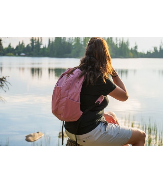 • Nery backpack equipment: main compartment, chest strap, laptop pocket, small front pocket, front mesh pocket, 2 side mesh pockets for a bottle.