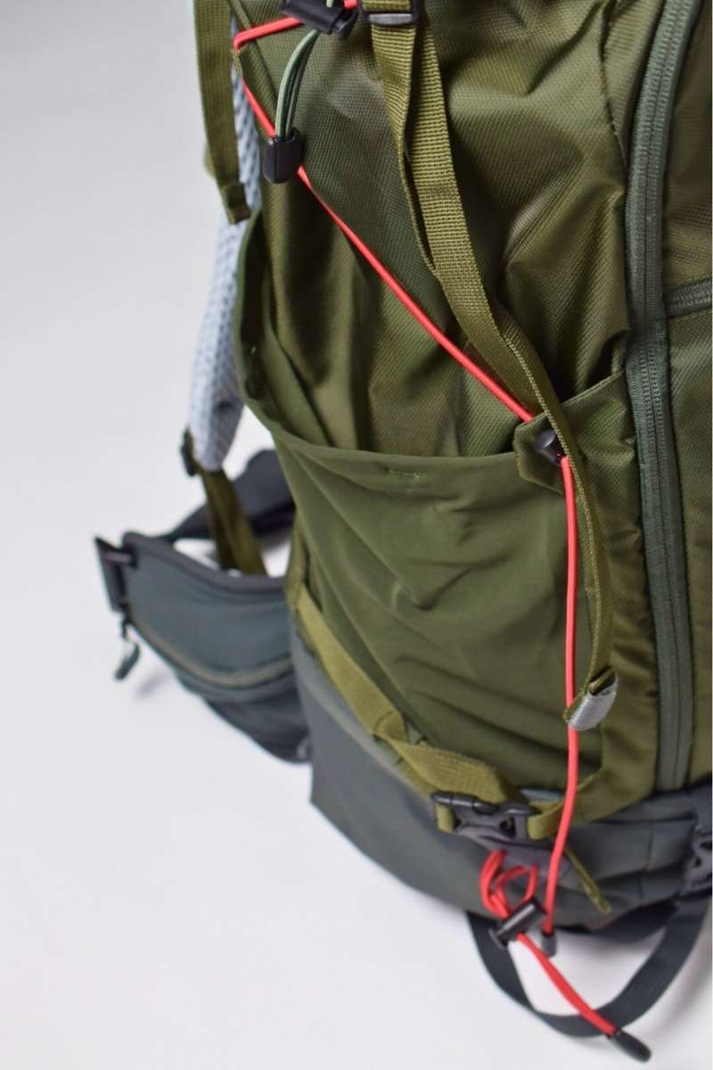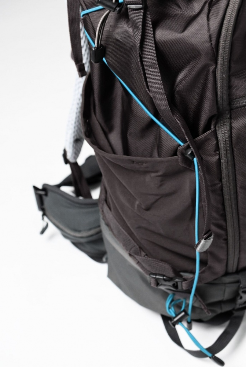 It’s a technical spacer mesh. The mesh is firm, breathable, and highly malleable, which considerably reduces its adherence to your back when you’re sweating. Another advantage is the low weight in relation to the total volume. Added to which it doesn’t absorb moisture, and is perfectly elastic and anti-allergenic.