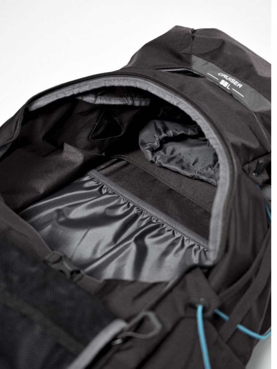 The spacious CRUISER 55 backpack is the ideal equipment for every traveler and hiking enthusiast. We made it from high-quality materials that can withstand adverse weather conditions. The modern construction and comfortable back system will not restrict your movement even in challenging terrain, and will also securely fix the backpack to your back. A bonus is the backpack's rich features and the number of pockets for all essentials.
