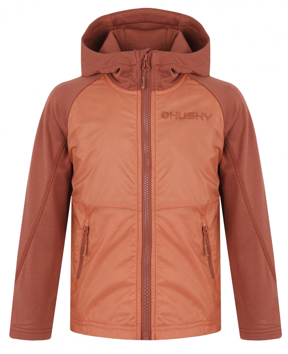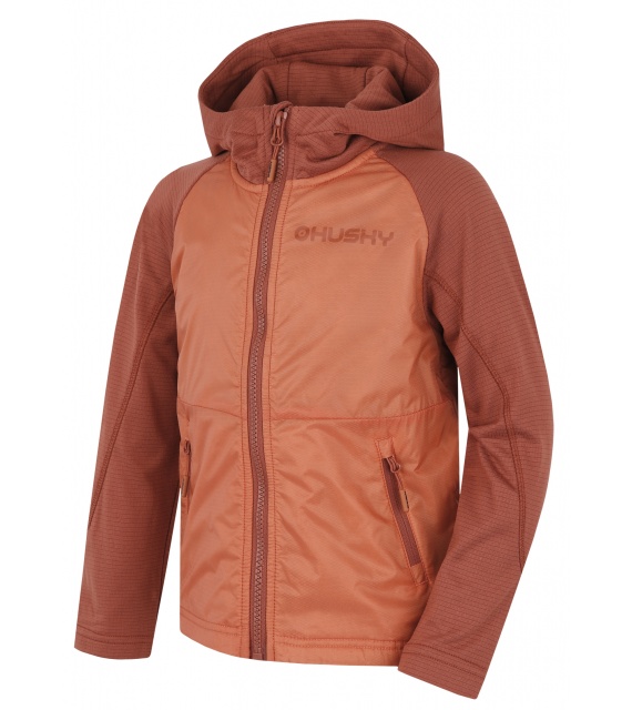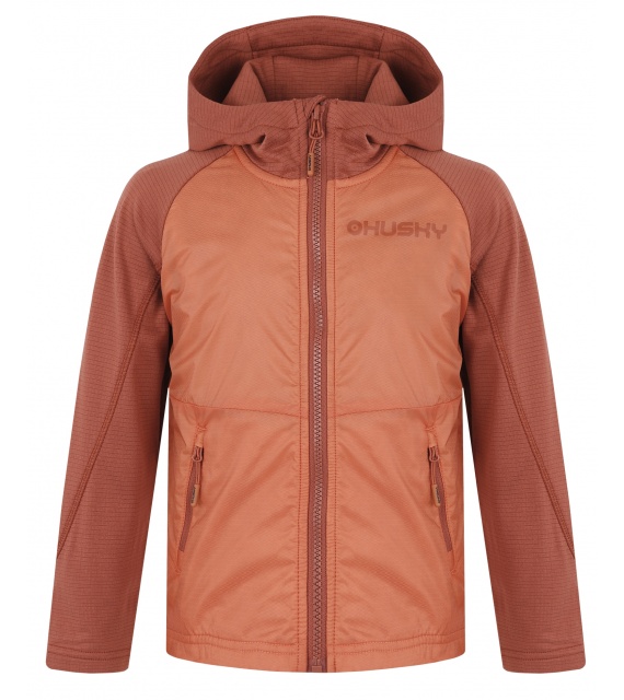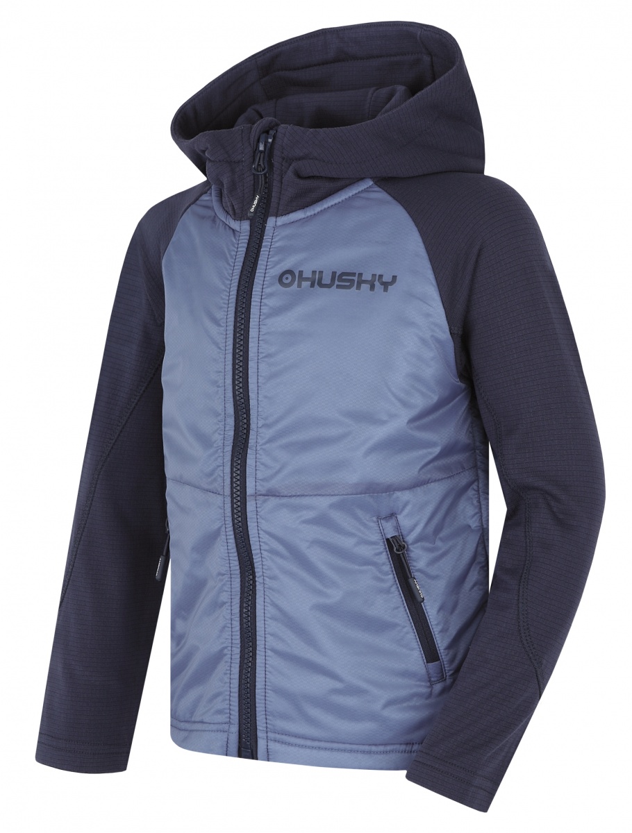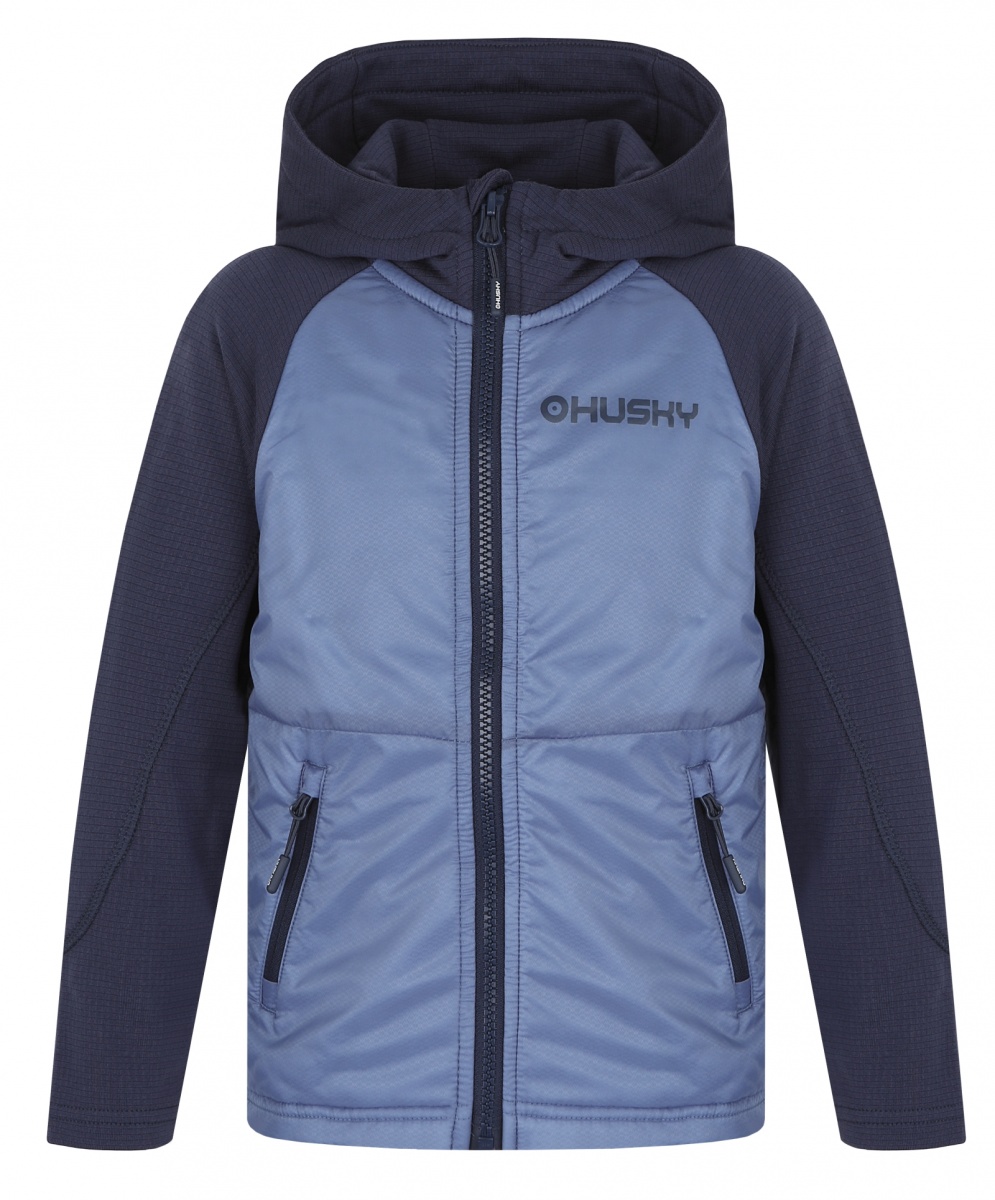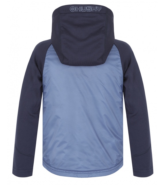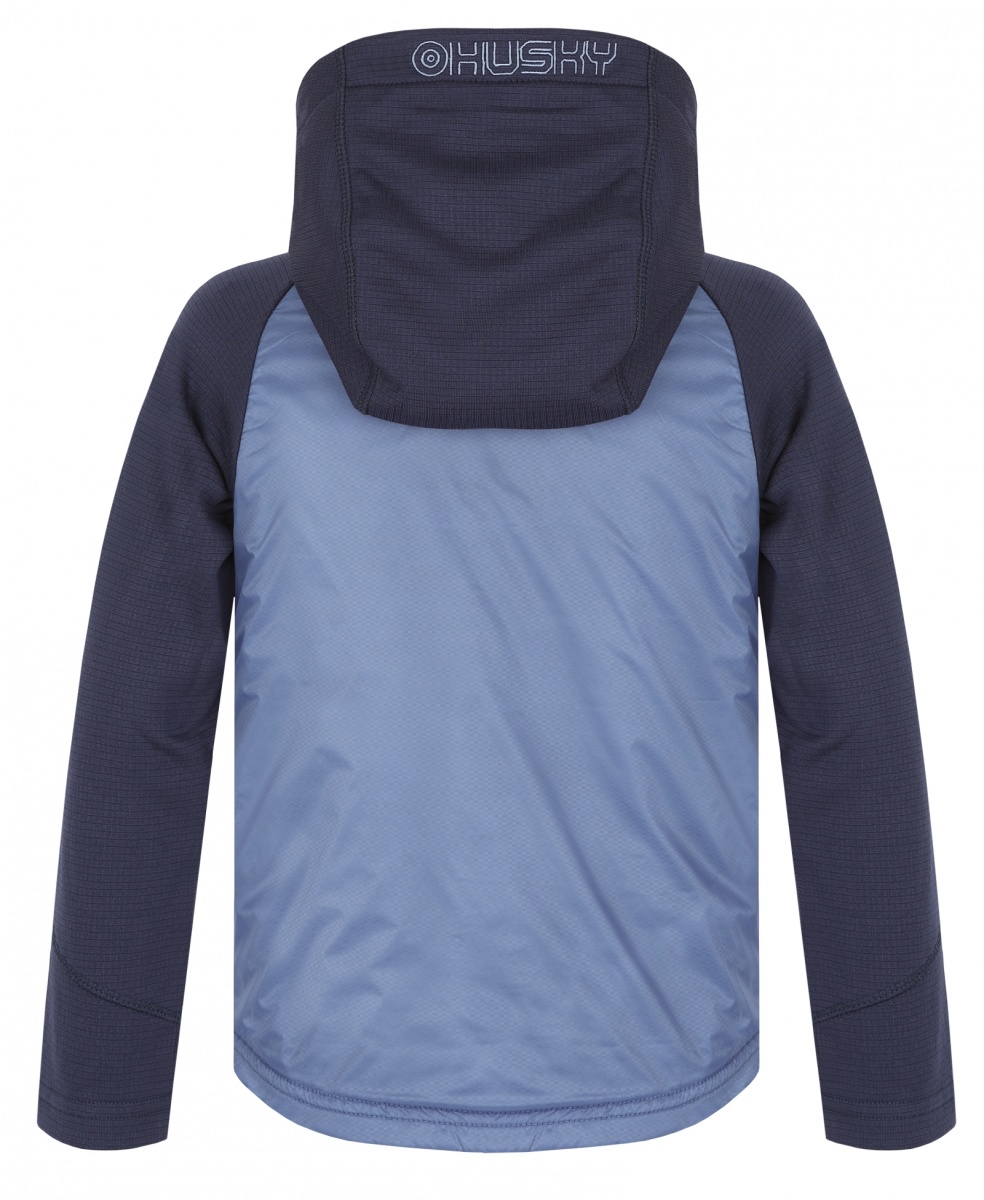 • A hybrid between a sweatshirt and a jacket - the front and back panels are filled with a thin layer of synthetic insulation for perfect thermal comfort.