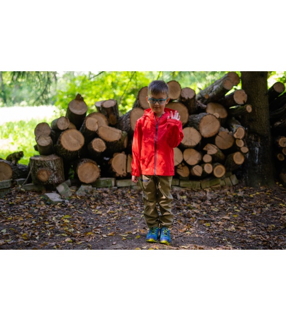 A kids’ outdoor jacket with a hood and membrane – for outdoor activities from spring through autumn.