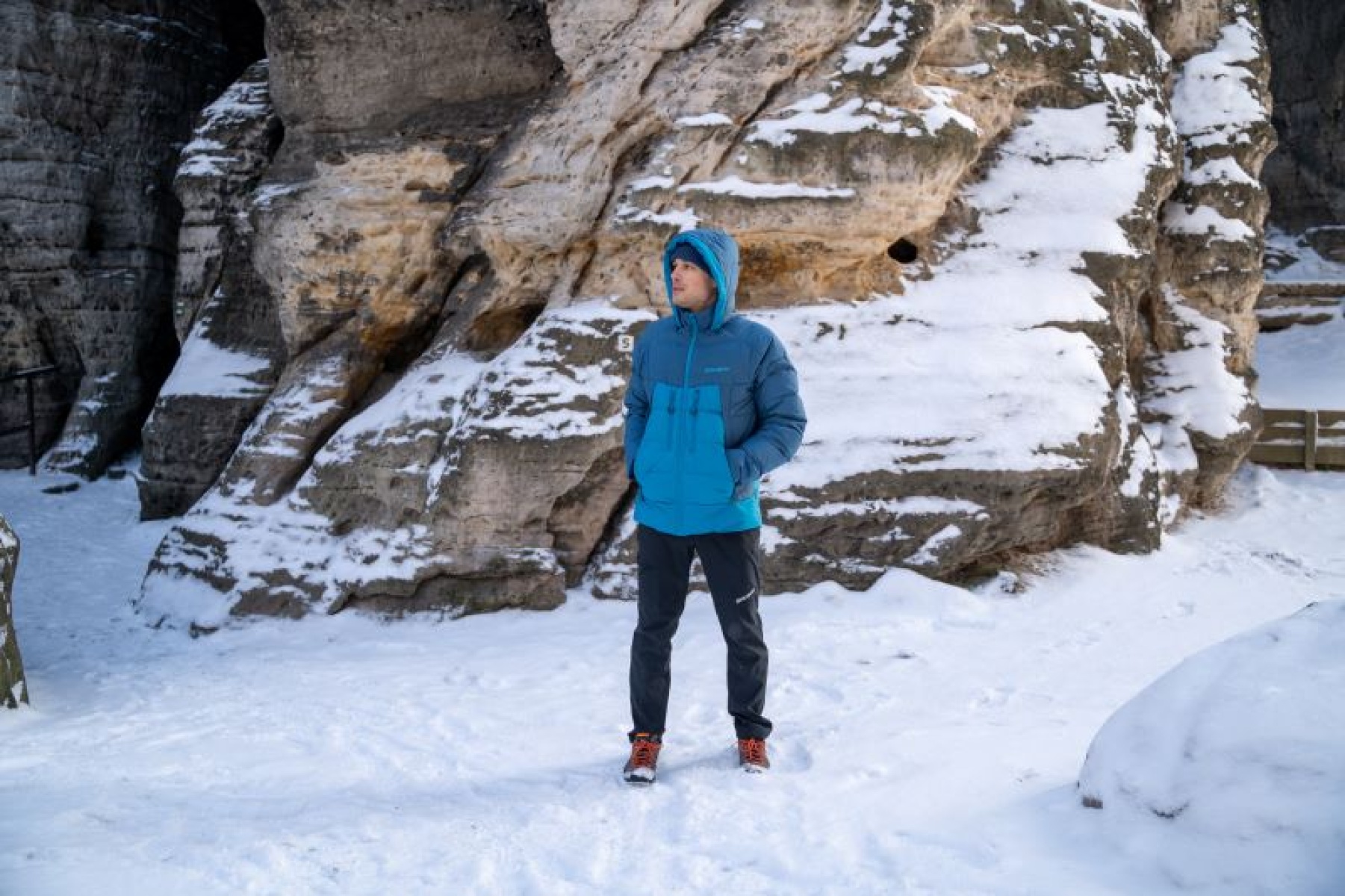A warm men’s jacket with a high-quality duck feather filling, intended for everyday wear as well as winter outdoor activities.