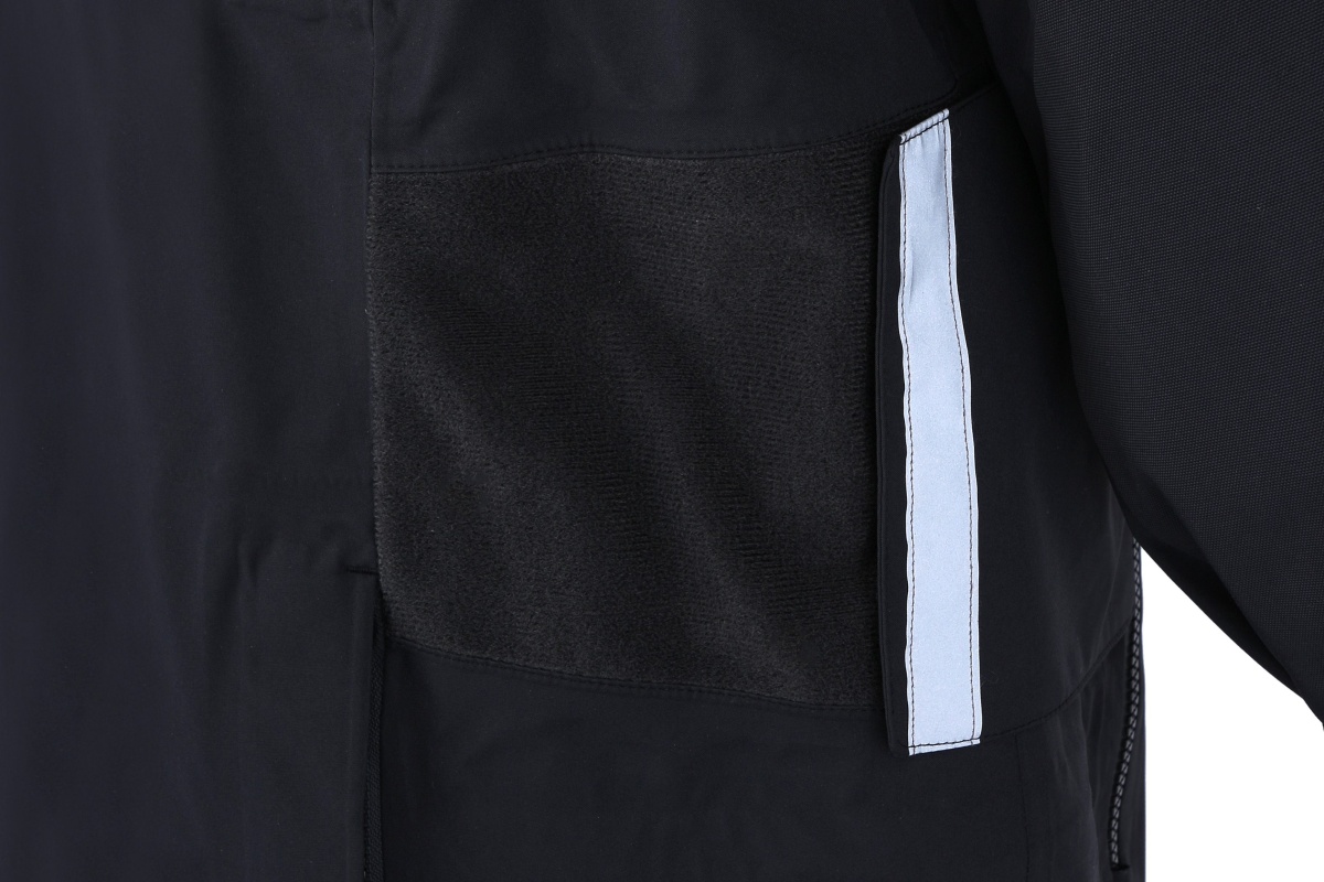 • The DWR water repellent treatment of the outer layer of the garment prevents moisture from seeping through; water beads up and immediately runs off the surface.