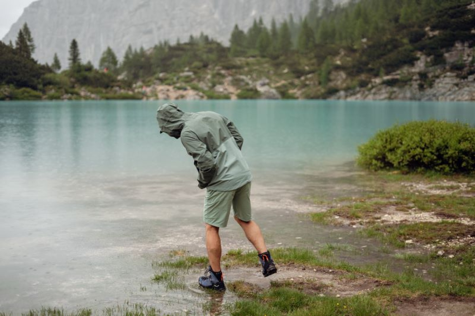 • The DWR water repellent treatment of the outer layer of the garment material prevents moisture from seeping through, and water immediately runs off the surface in the form of beads.