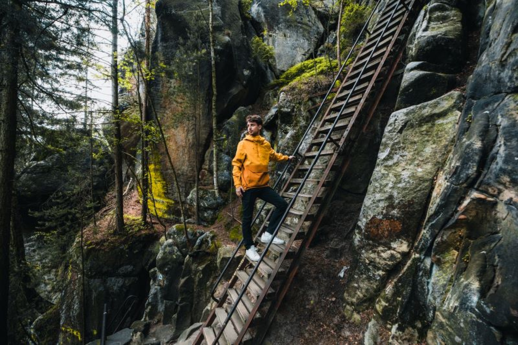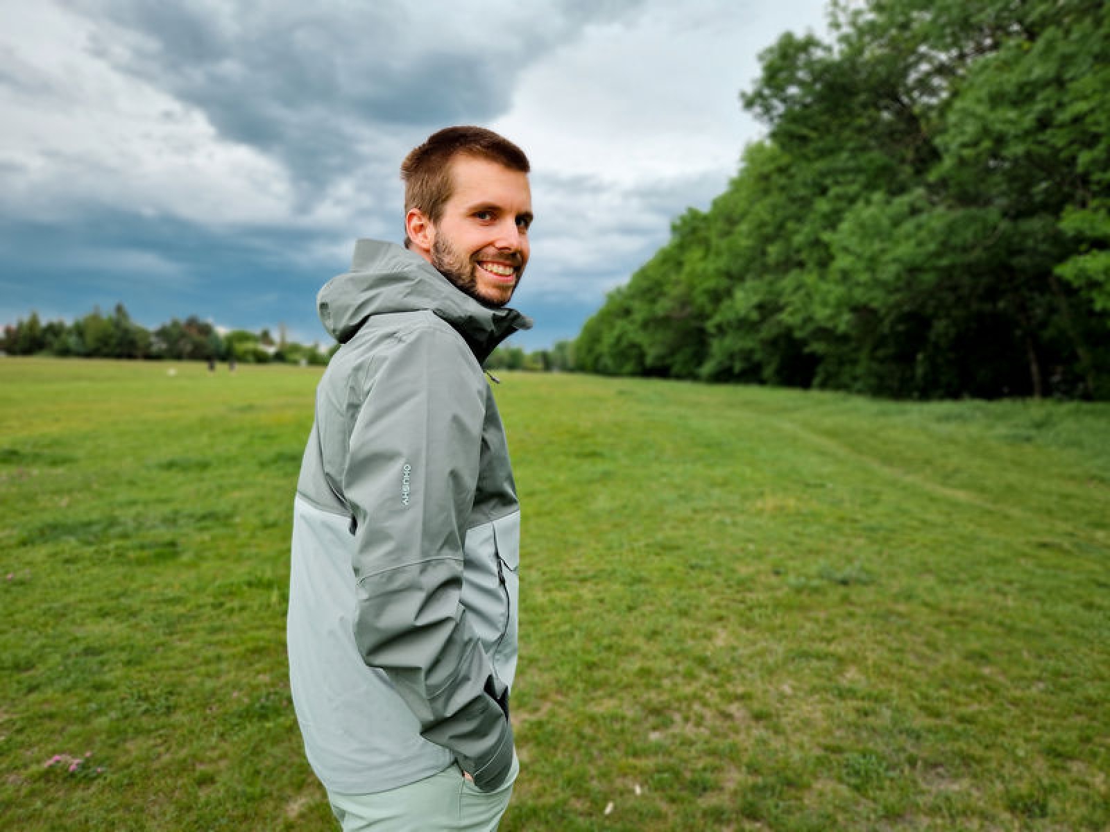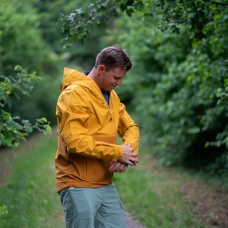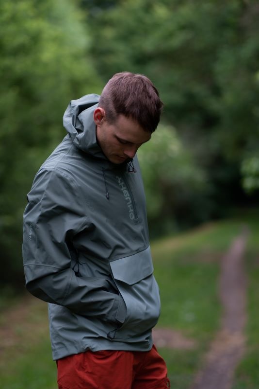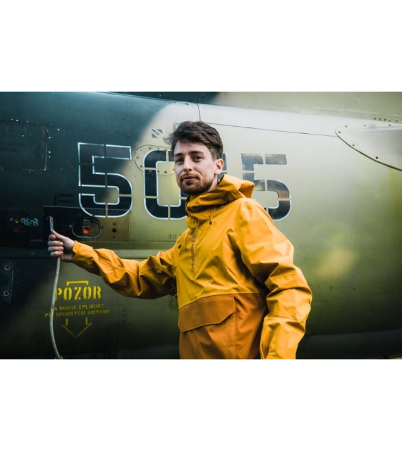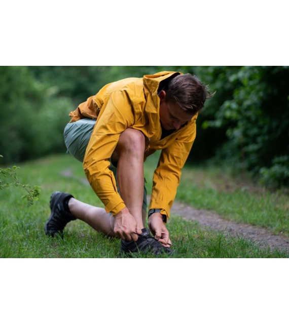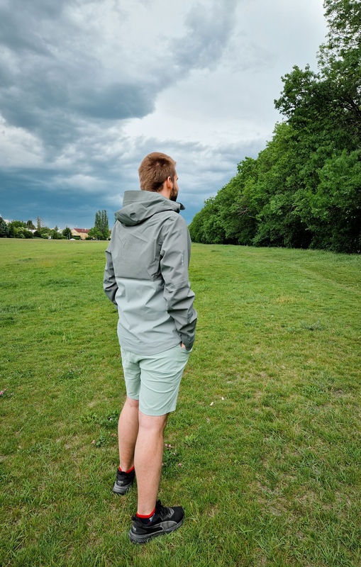 Multifunctional men’s outdoor jacket with hood, for year-round use in demanding conditions, worn both in the countryside for hiking and in the city.
