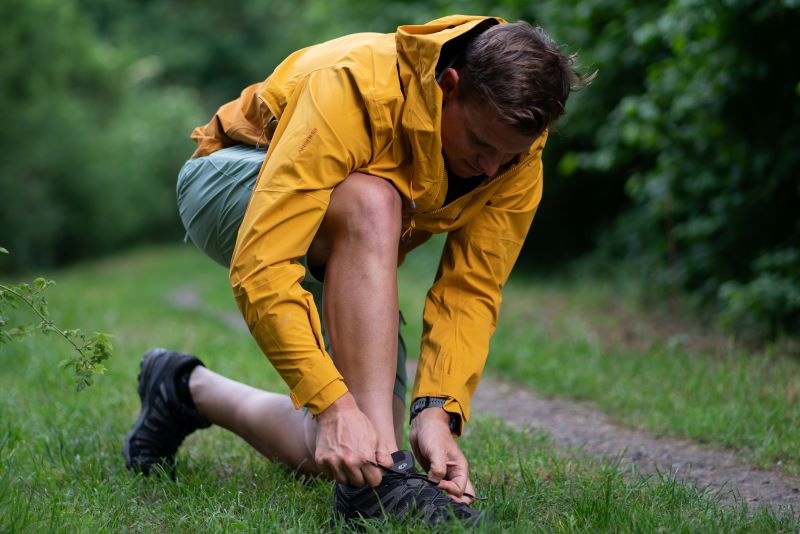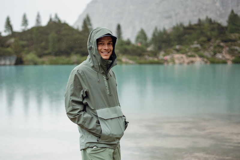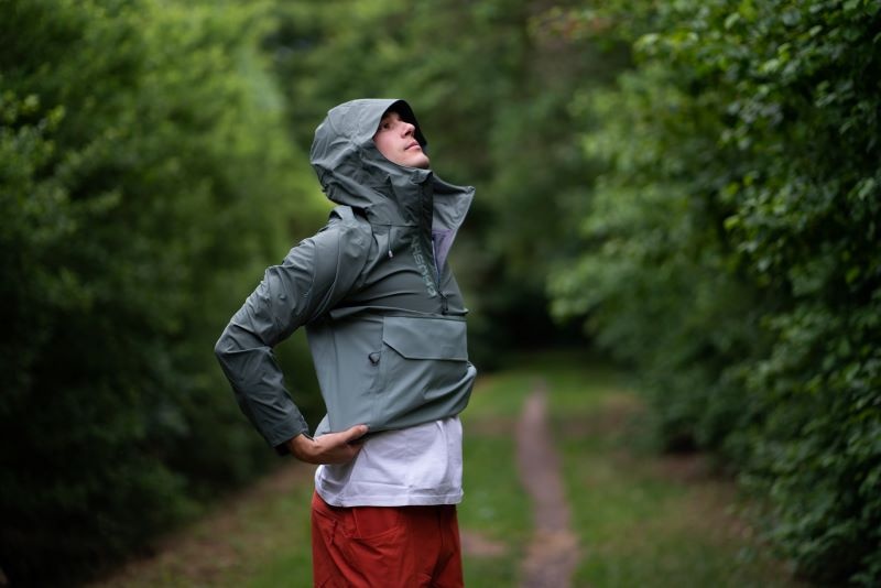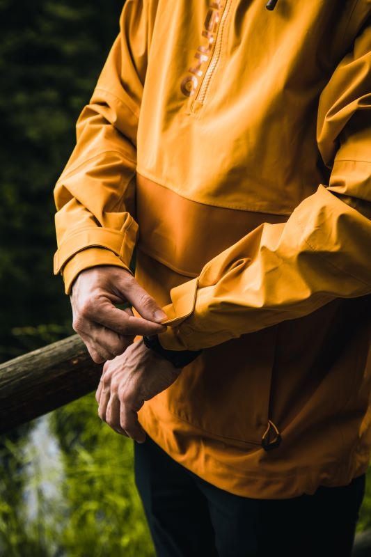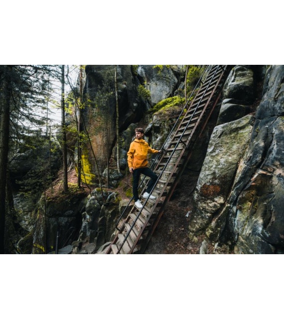 Multifunctional men’s outdoor jacket with hood, for year-round use in demanding conditions, worn both in the countryside for hiking and in the city.