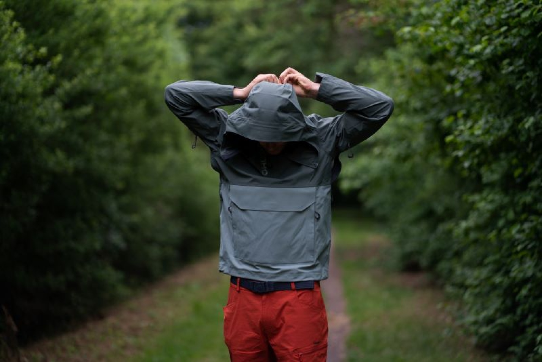 • Drawstring-adjustable hood
