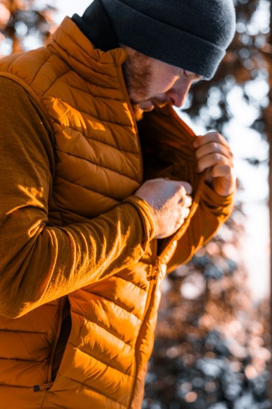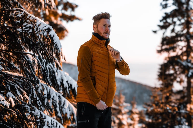 Take the ultra-lightweight, waterproof Dresles M outdoor gilet with you on a trip to the great outdoors. It’s easy to pack in a small pocket and keep handy for when you need it. We used high-quality duck feathers for the inner filling, which provides excellent thermal insulation. Thanks to the water-repellent DWR treatment, it is suitable for demanding conditions during bad weather.