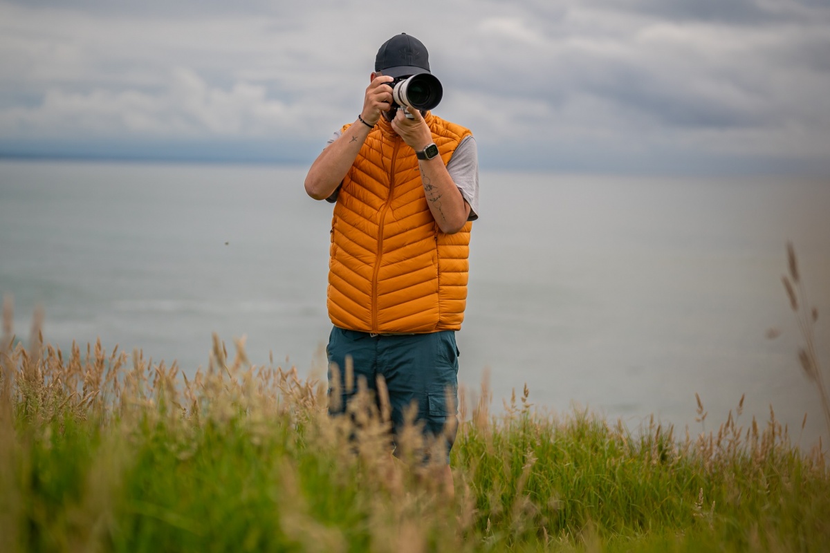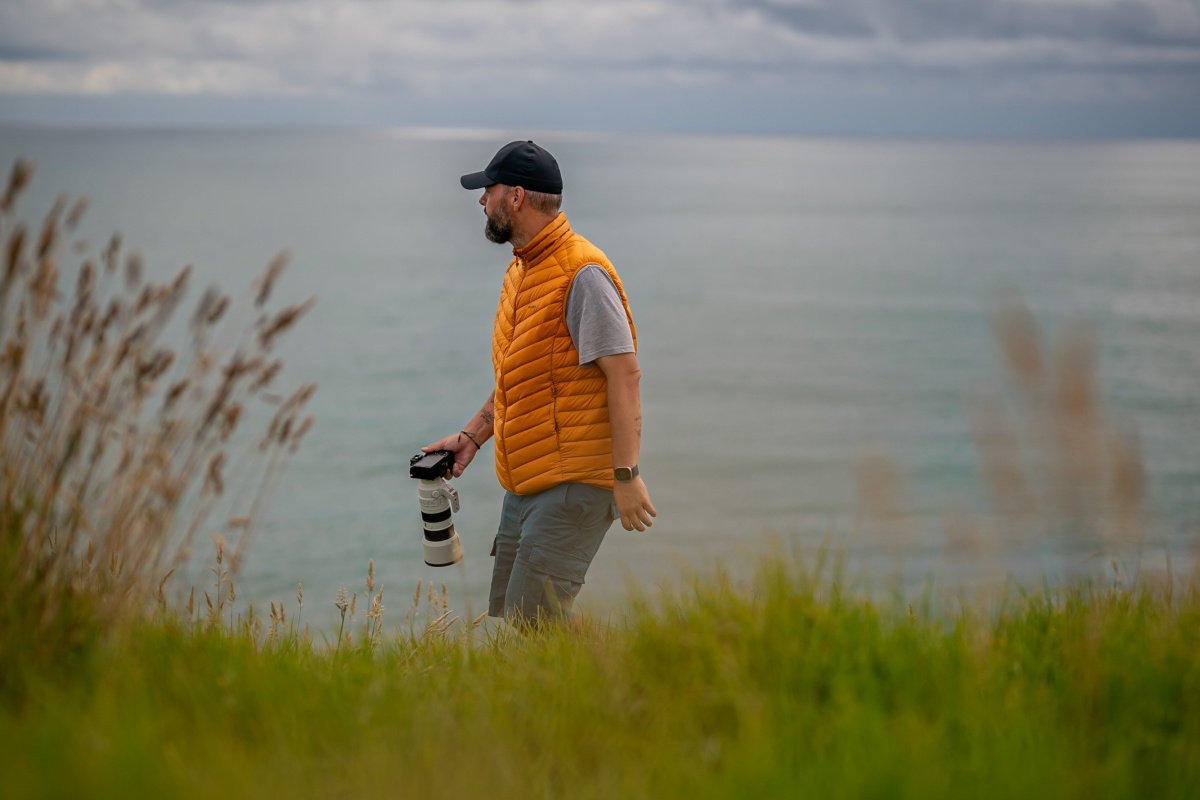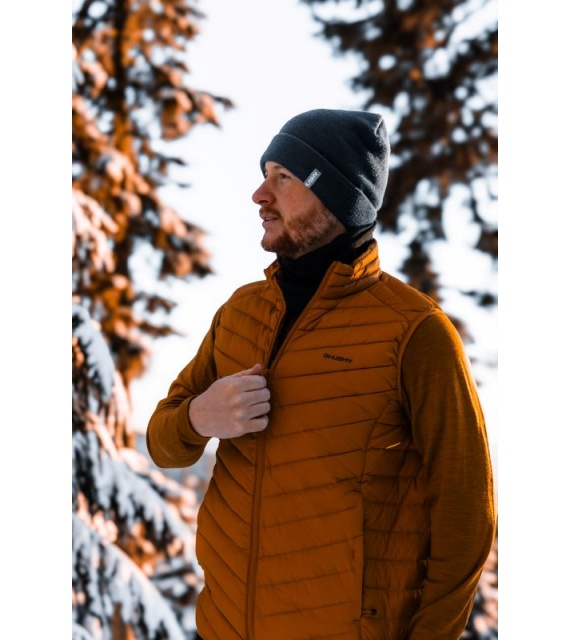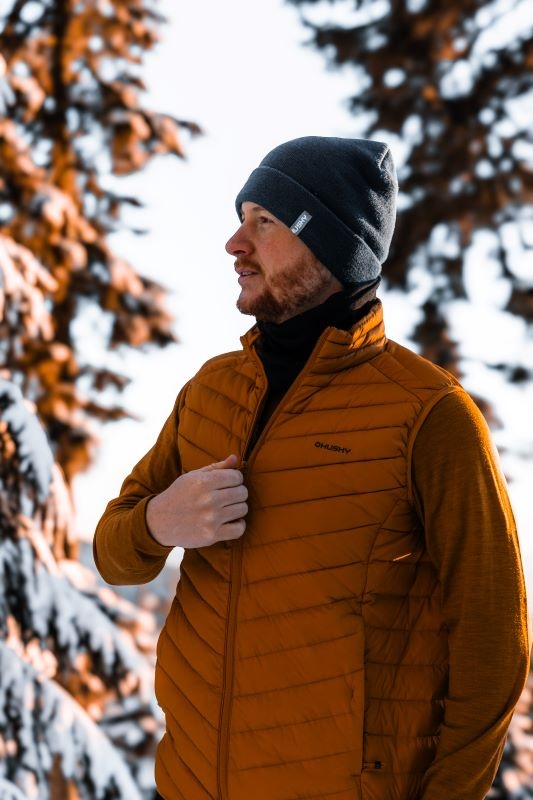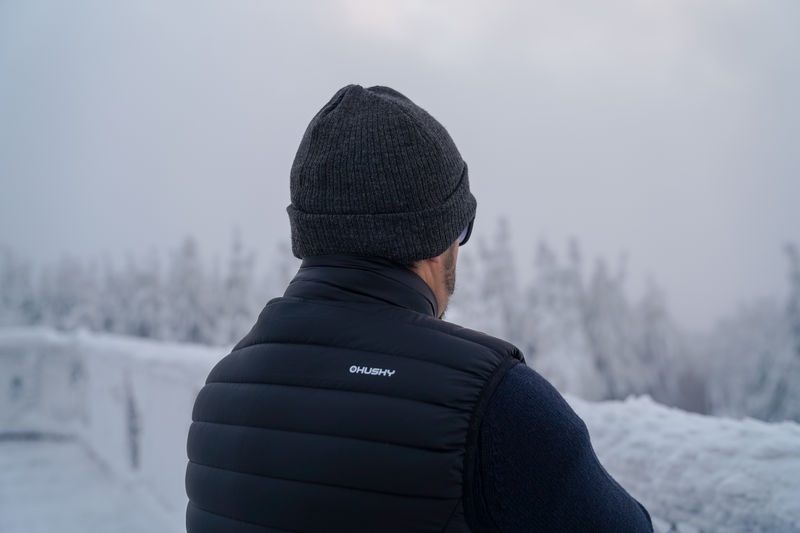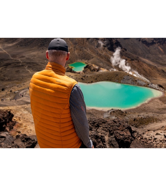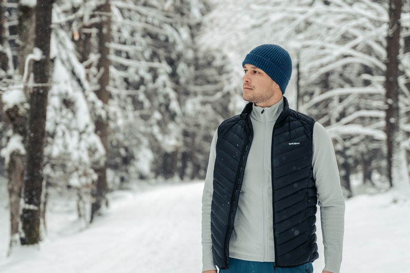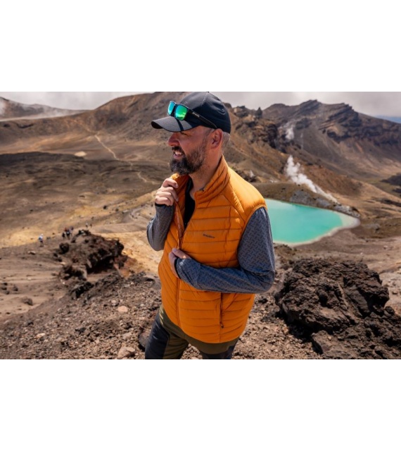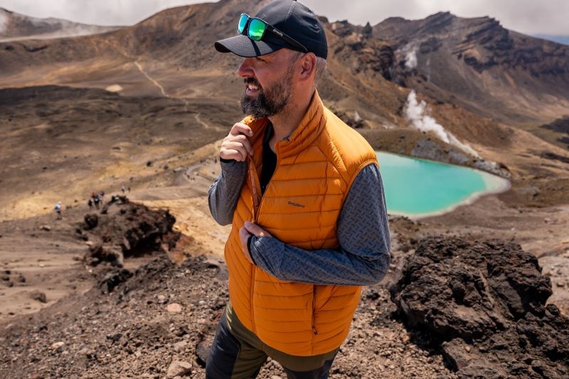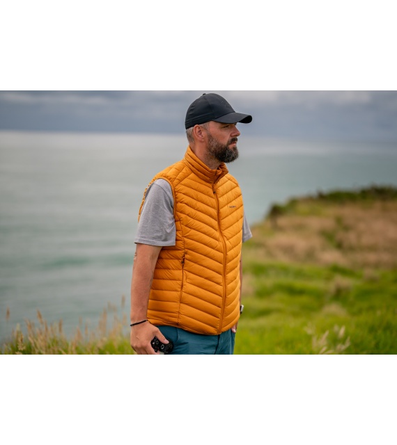 A light, men’s, zip-up gilet suitable for hiking and other outdoor activities on colder days.