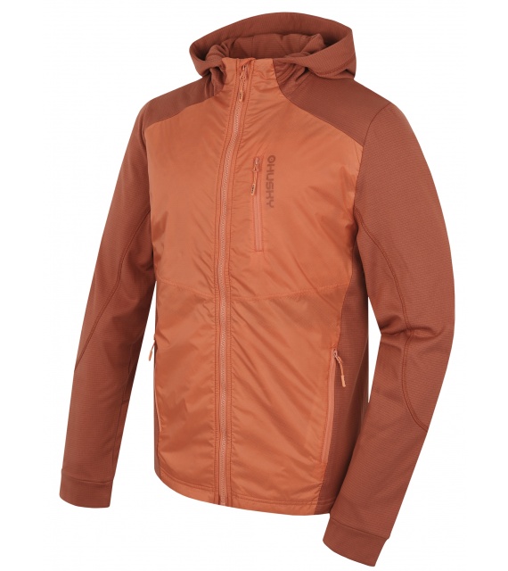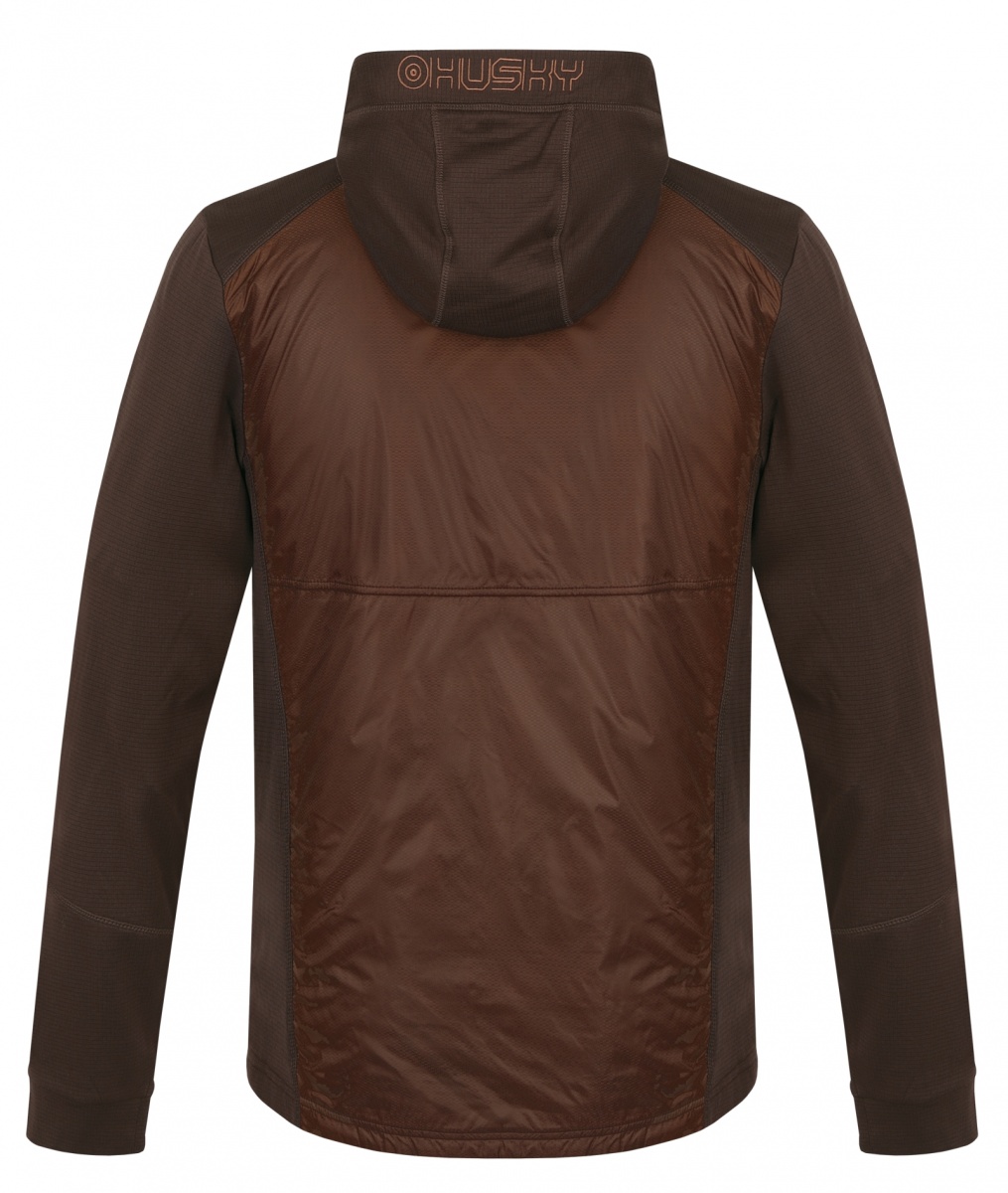 • A hybrid between a hoodie and a jacket - the front and back panels are filled with a thin layer of synthetic insulation for perfect thermal comfort.