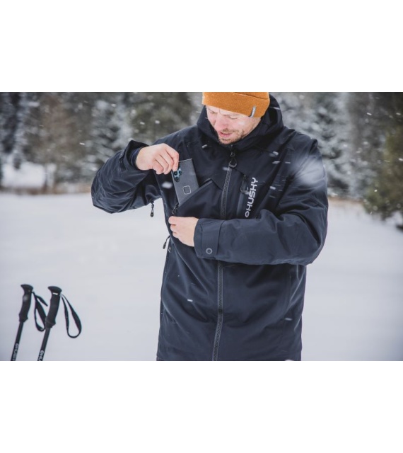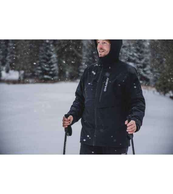 men’s hardshell jacket! It is ideal for downhill and cross-country skiing and other more or less challenging sports activities in winter, where you need to move comfortably. It won’t let you down on your way home from work or on walks. It can withstand wind and rain, and you’ll always be warm and dry.