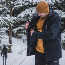 men’s hardshell jacket! It is ideal for downhill and cross-country skiing and other more or less challenging sports activities in winter, where you need to move comfortably. It won’t let you down on your way home from work or on walks. It can withstand wind and rain, and you’ll always be warm and dry.