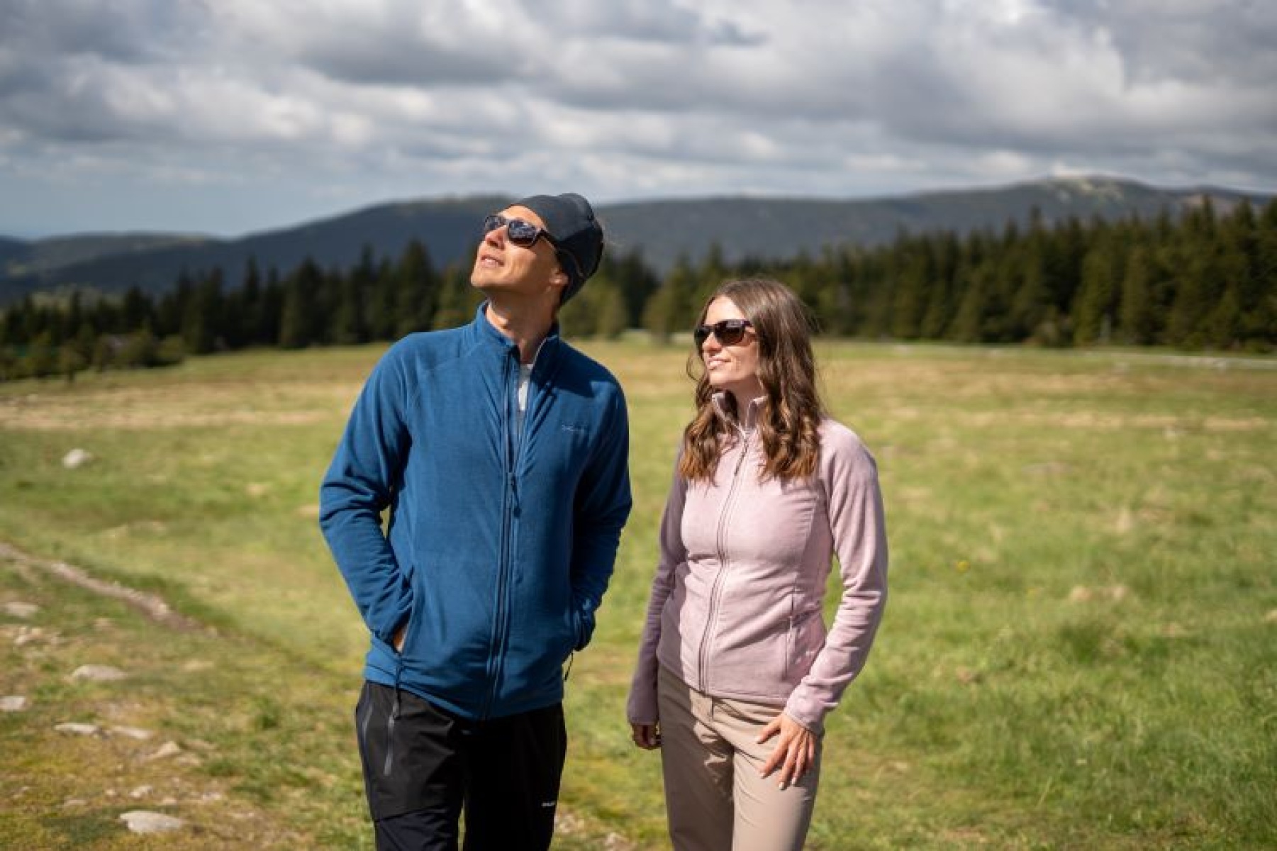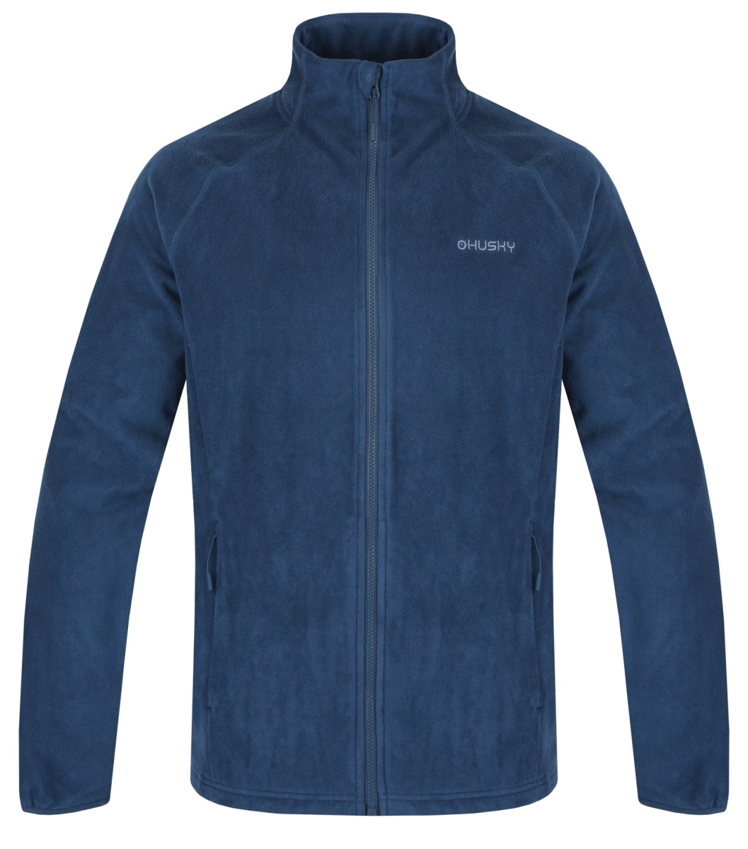 A moderately thick men’s stand-up collar, zippered sweater suitable for various outdoor activities.