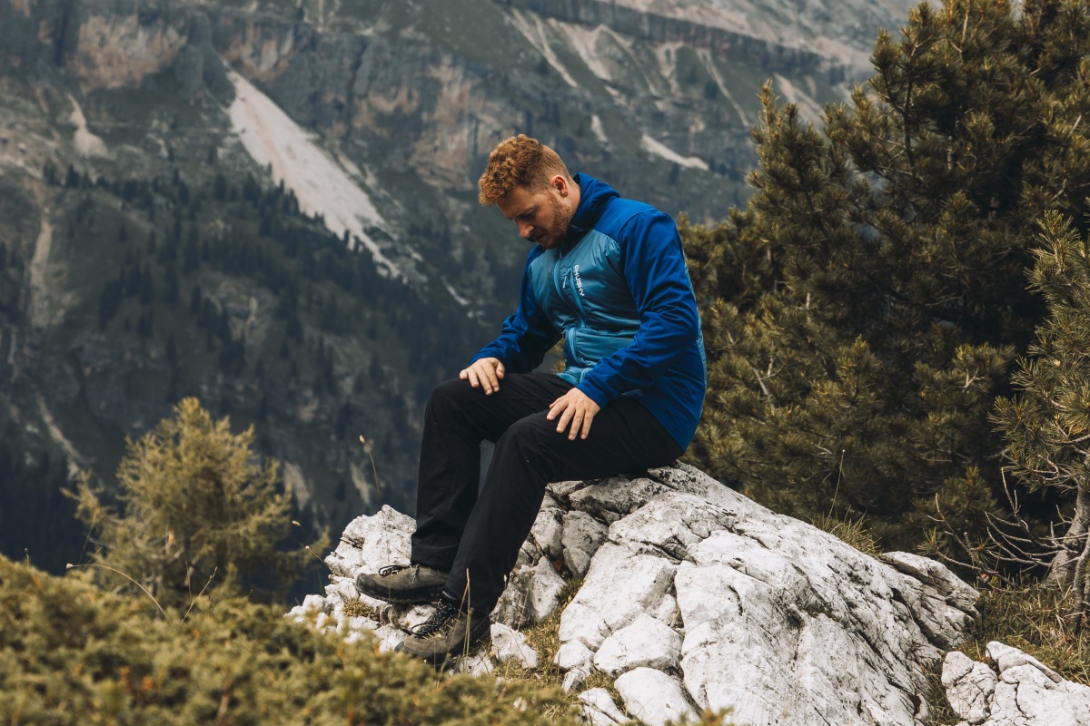 A breathable men’s sweatshirt made of elastic knit for outdoor activities, hiking, sports and casual wear around town.