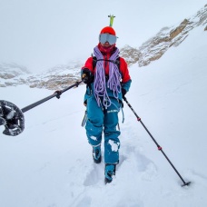 A hardshell jacket for men for ski mountaineering, skiing, winter trekking and other sports activities.