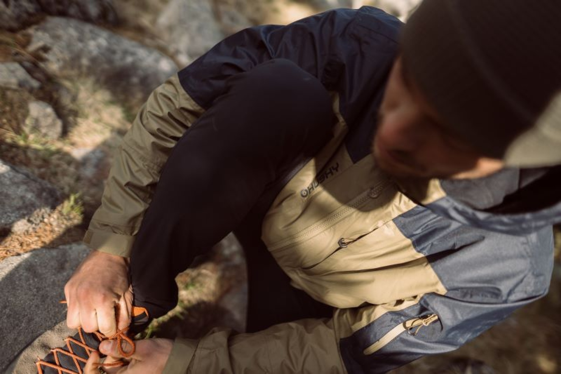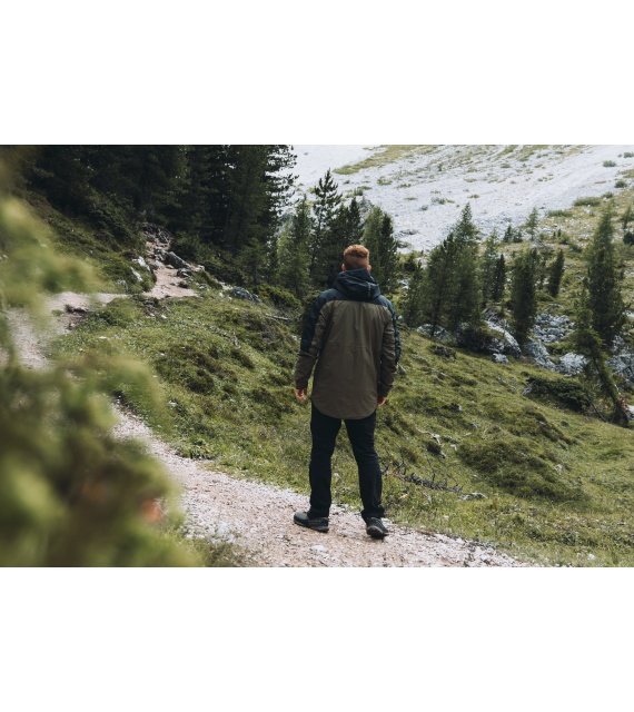 A functional hardshell membrane jacket for men suitable for challenging conditions as well as classic hiking and casual wear around town.