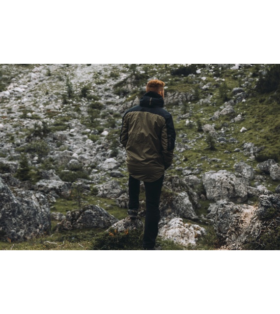 A functional hardshell membrane jacket for men suitable for challenging conditions as well as classic hiking and casual wear around town.