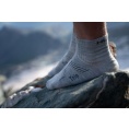 Trail are thinner socks reaching above the ankle. They have a reinforced foot area for soft footfall and a reinforced instep area against slipping. They are made of a fibre blend containing merino wool, which ensures comfort during active movement as well as during undemanding activities.