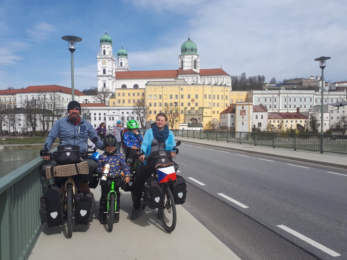 Ráno je obloha šedivá a teplota kolem 8 stupňů, což je velké ochlazení, ale na začátek dubna poměrně přijatelné. Prvních několik kilometrů pokračuje podle Innu, ale pak stezka vede na hlavní silnici, kde je pouze cyklopruh. Na frekventovaných silnicích Olíka připínáme na přídavné zařízení ke kolu Follow Me, abychom měli jistotu, že nevybočí, ze směru jízdy. Trasa nás zavede do města Burghausen, který už leží na toku Salzachu a kde se napojujeme na Taurskou cyklostezku. Nad městem se tyčí obrovský hradní komplex, jeden z největších co jsme viděli. Opravdu úžasný pohled, ale šedivá obloha znemožňuje zachycení na foto v nějaké slušné kvalitě. Tady už se nám začíná stávat, že nás lidé oslovují a ptají se kam a odkud jedem. Německy umíme pár slov, ale cíl cesty, na který většinou reagují vytřeštěním očí, se nám většinou podaří sdělit. Takhle nás osloví paní od jednoho domku, kolem kterého projíždíme a nechce nás pustit jet dál, dokud Vojtíškovi nedá čokoládu a sušenky. Od města Tittmoning vede až do Salzburgu parádní stezka po břehu řeky a bez kopců. Když tam dorážíme, mezi mraky se opět dere sluníčko. Uděláme si krátkou projížďku městem a míříme do kempu, protože Olík už je po několika dnech v sedle opravdu unavený. Rozhodujeme se, udělat si zítra servisní den. Kemp v Salzburgu je otevřená jediný a nechá si to řádně zaplatit.