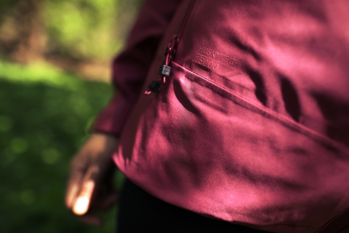 Bunda je lehká a rychle schne. Dobře se balí, do batohu ji většinou hňácám bez skládání a po vyndání kupodivu nevypadá, jak kdybych jí právě vytáhla krávě z tlamy. Moc oceňuji prodloužený zadní díl bundy, který má upravitelné stahování a je dostatečně dlouhý, aby zakryl celý zadek.