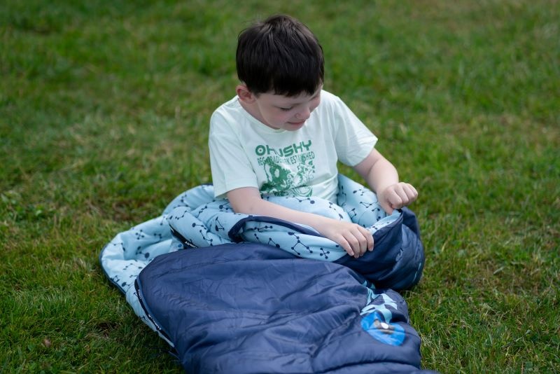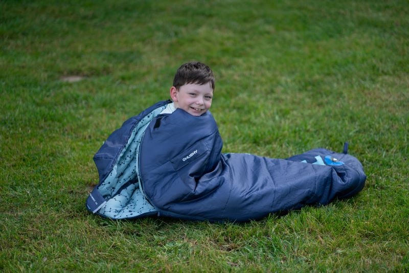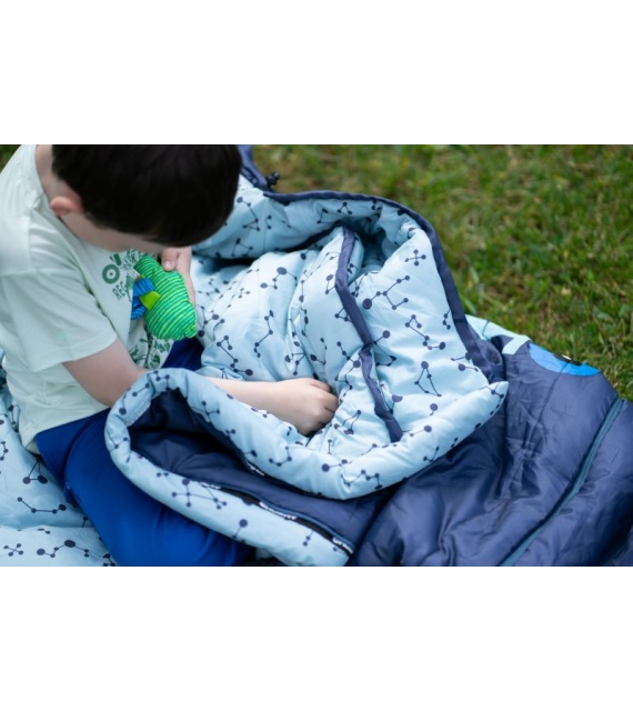 A comfortable sleeping bag with adjustable length for small children and teenagers, suitable for various outdoor activities from spring to autumn.