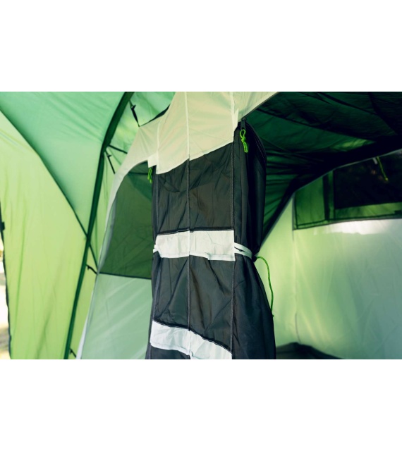 The family tent Boston 5 makes an ideal base for longer camps with family or friends, and offers overnight comfort on paddling trips and bicycle tours. Inside you can find a comfortable and spacious vestibule with two entrances, where you can also spend time in adverse weather. The tent also has a large detachable bedroom for five people with a separate entrance.