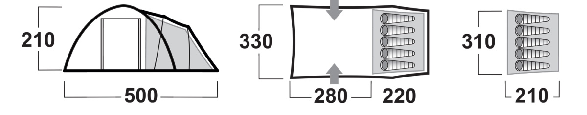 | Dimensions | (W × L × H) 330 x 500 x 210 cm |