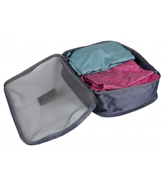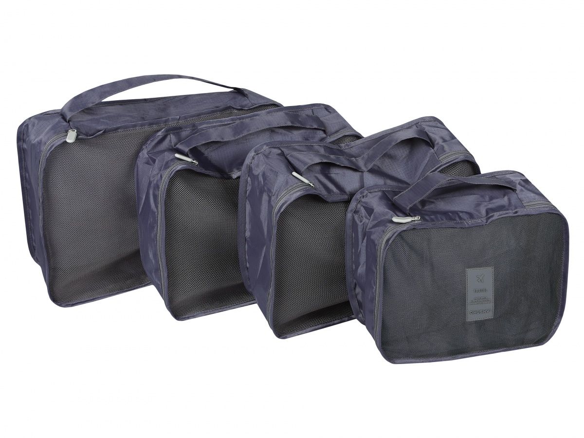 A set of four organizers of different sizes, with zip closures, will help you keep your belongings neatly and efficiently organized in your luggage. Ideal for separating clothes, cosmetics, and electronics – whether you're heading out for a weekend, a business trip, or a longer vacation. The front mesh side ensures that clothes can still breathe and won't get stuffy. Plus, it gives you a clear overview of what's inside each organizer.