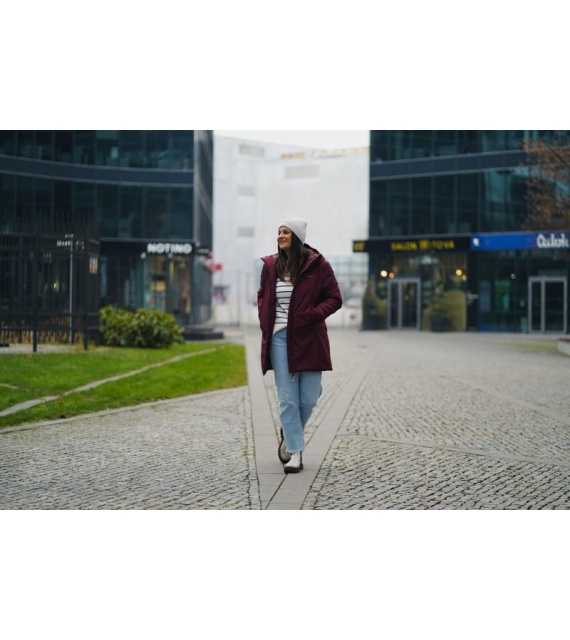 medium insulated women’s hardshell hooded coat is not only stylish and comfortable, but also highly functional. Thanks to the water-resistant membrane used, you will not be surprised by adverse weather on the way to work, a walk around town or a trip to the country.