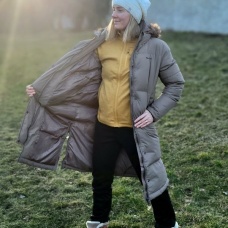 A warm women’s coat with a duck feather filling and fur trim for everyday wear around town as well as for outdoor activities.