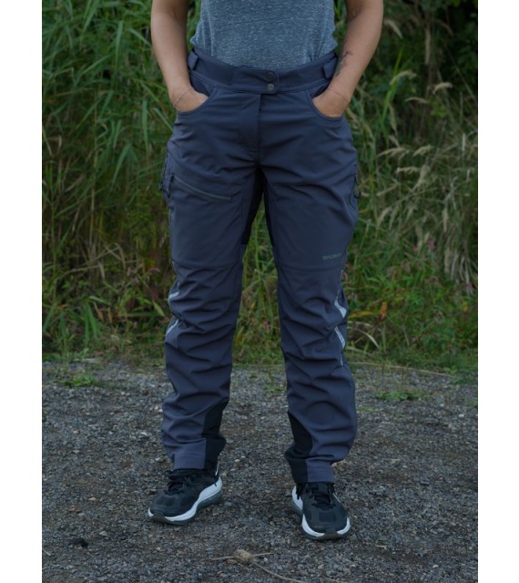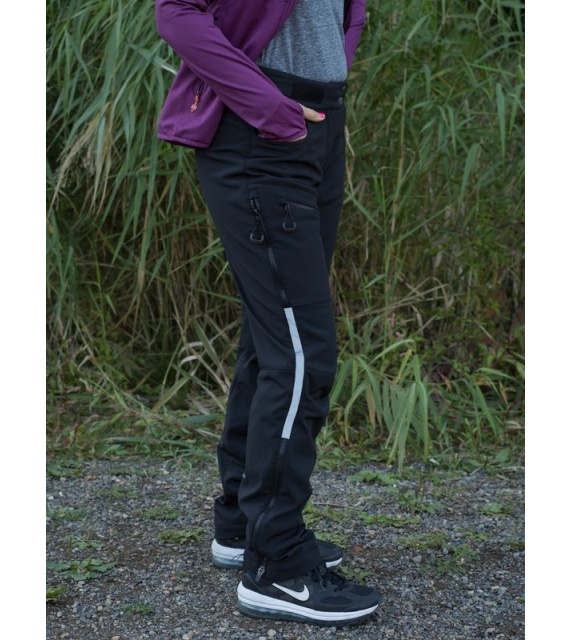 Women’s water-resistant softshell trousers for various outdoor activities.