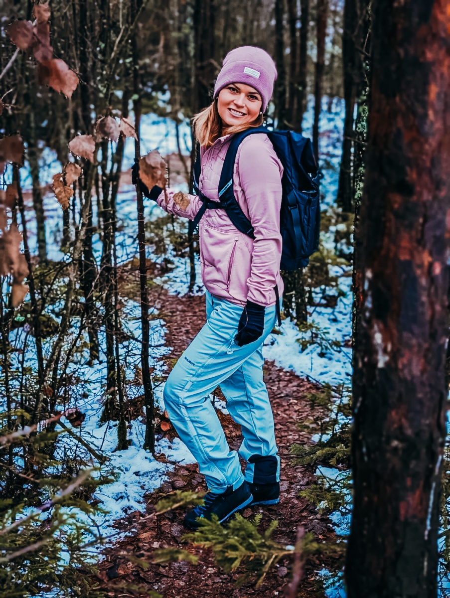 Women’s water-resistant softshell trousers for various outdoor activities.