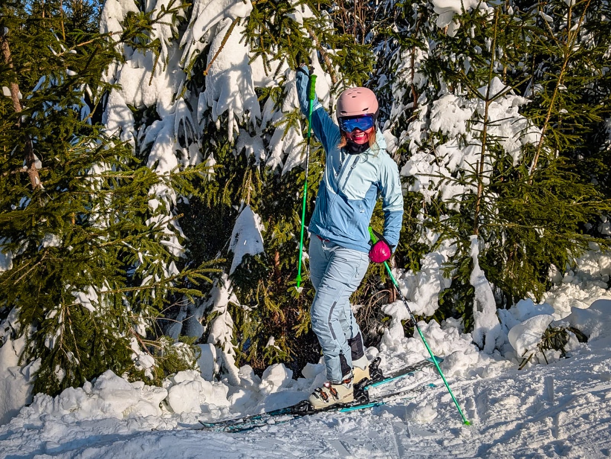 Women’s water-resistant softshell trousers for various outdoor activities.
