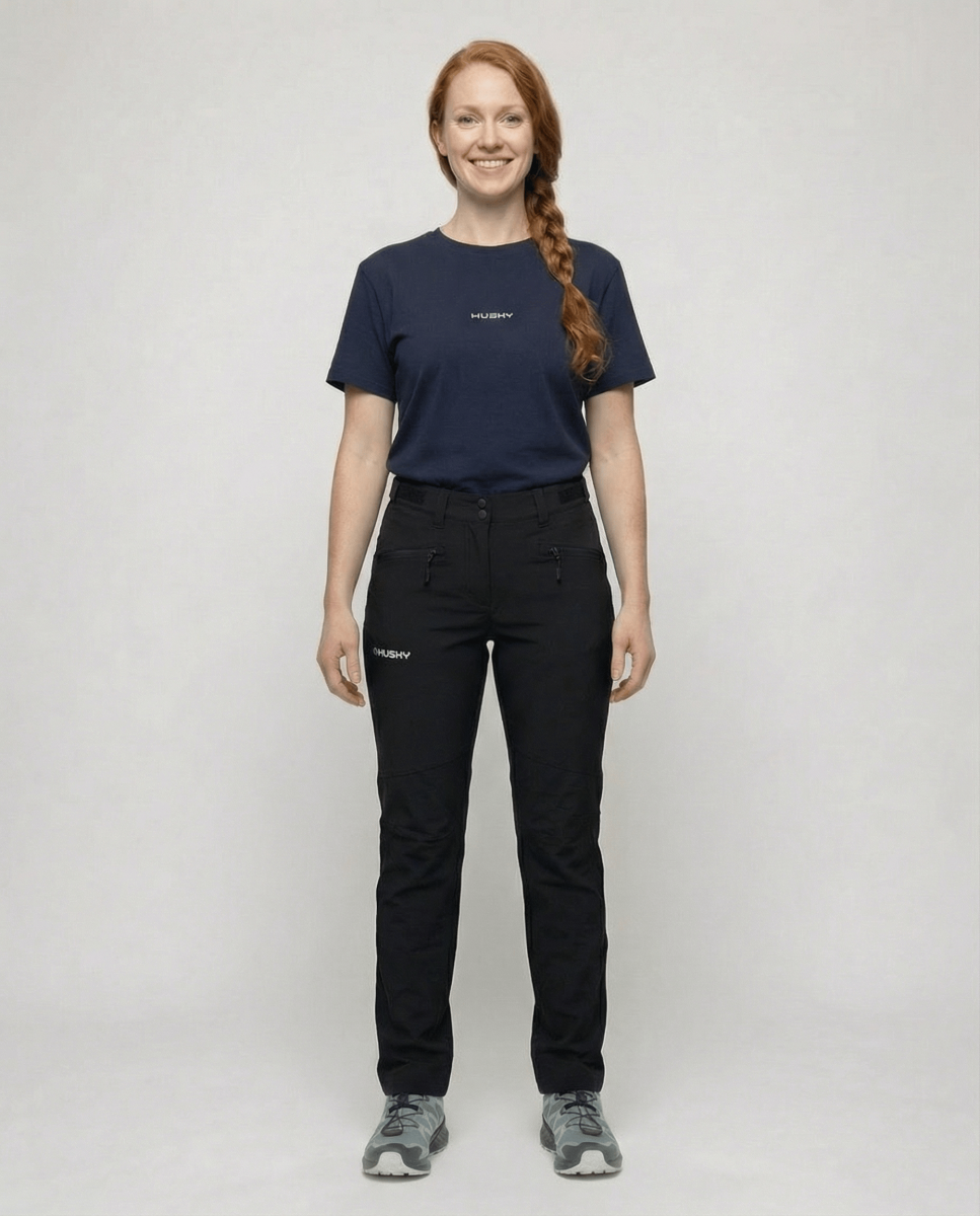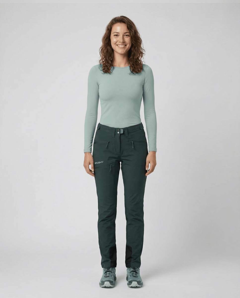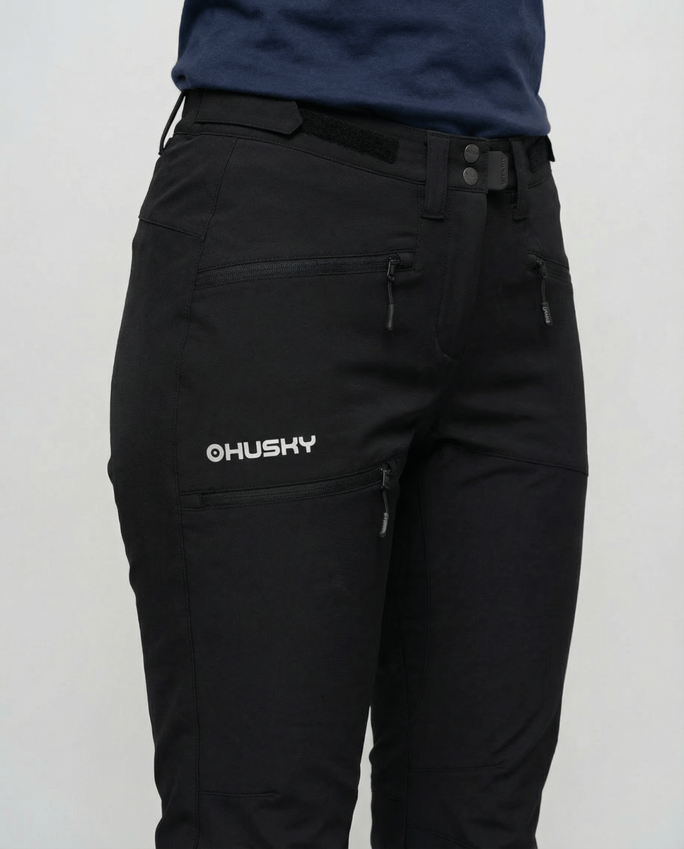 You can confidently wear the stronger, durable women's outdoor pants Kabuki L made of technical fabric for high-mountain hiking in challenging conditions. The breathable material and sophisticated cut allow you to move comfortably even during all-day wear. For waterproofing, the Husky Tech Stretch Plus membrane with a 20,000 water column rating is used, which, combined with a quality DWR treatment, will keep you dry and warm.