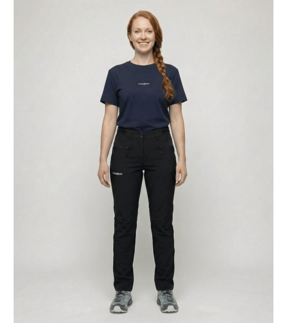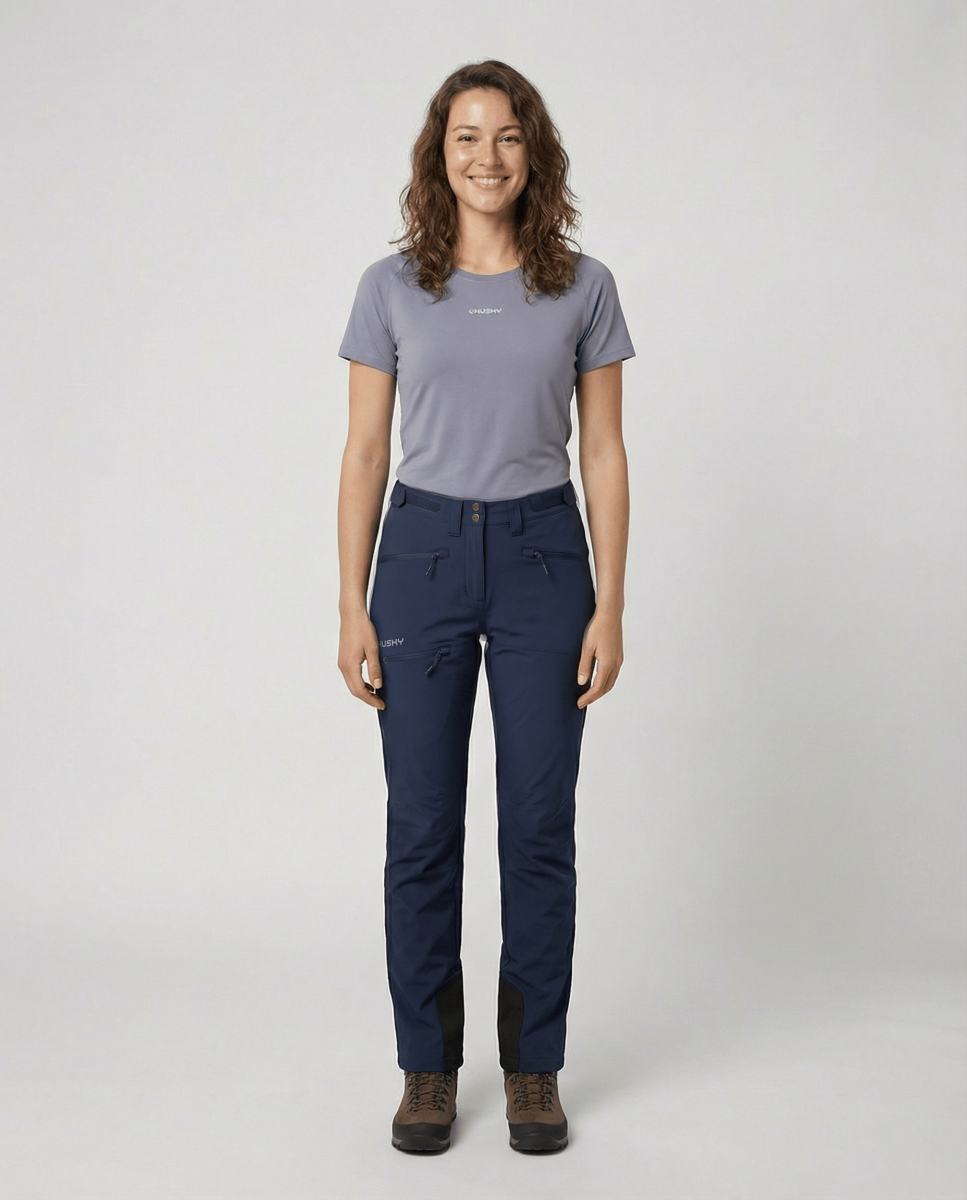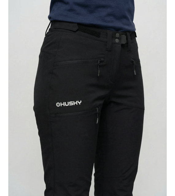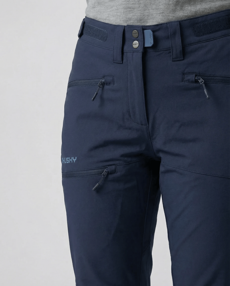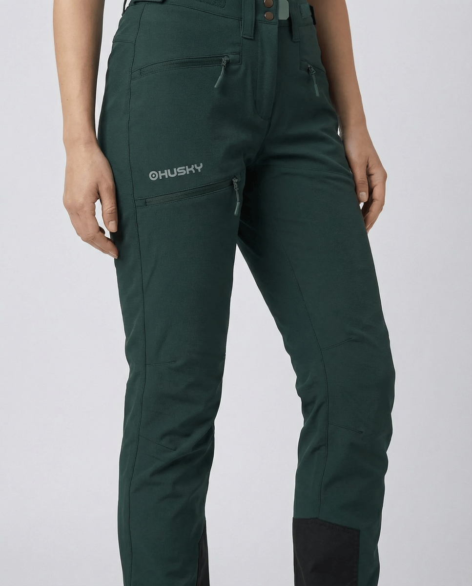 You can confidently wear the stronger, durable women's outdoor pants Kabuki L made of technical fabric for high-mountain hiking in challenging conditions. The breathable material and sophisticated cut allow you to move comfortably even during all-day wear. For waterproofing, the Husky Tech Stretch Plus membrane with a 20,000 water column rating is used, which, combined with a quality DWR treatment, will keep you dry and warm.