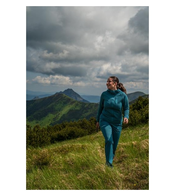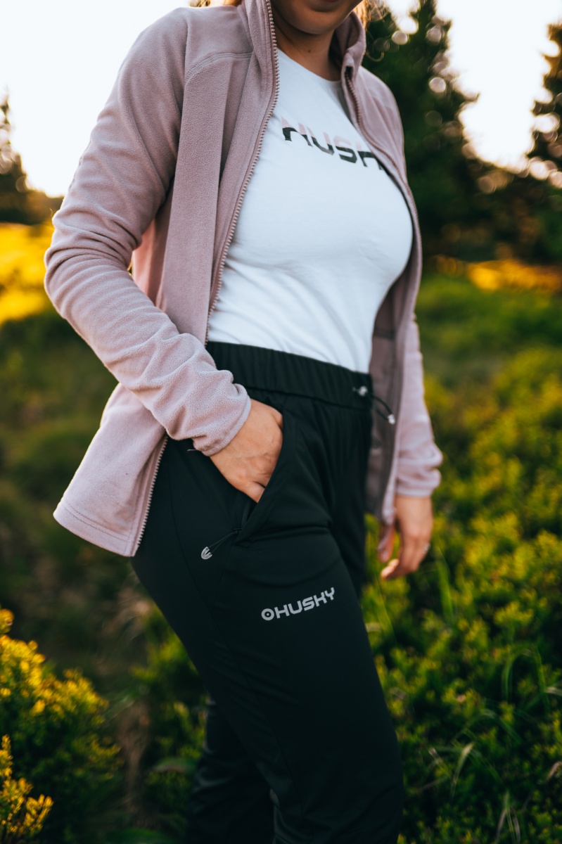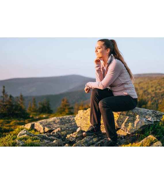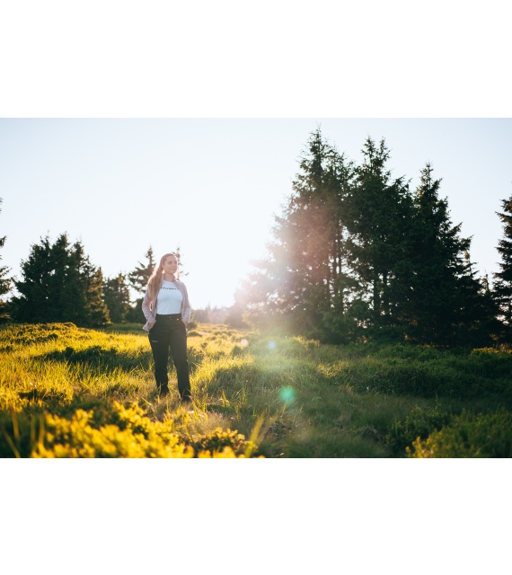 Women's softshell pants Kaila L you will use all year round for various outdoor and sports activities – for trips, cross-country skiing, cycling, and in the woods. The pants have a modern, anatomically shaped cut that follows the female figure without restricting movement. We made them from high-quality materials, they are light, flexible, and ready for anything – from a morning run to an evening walk.