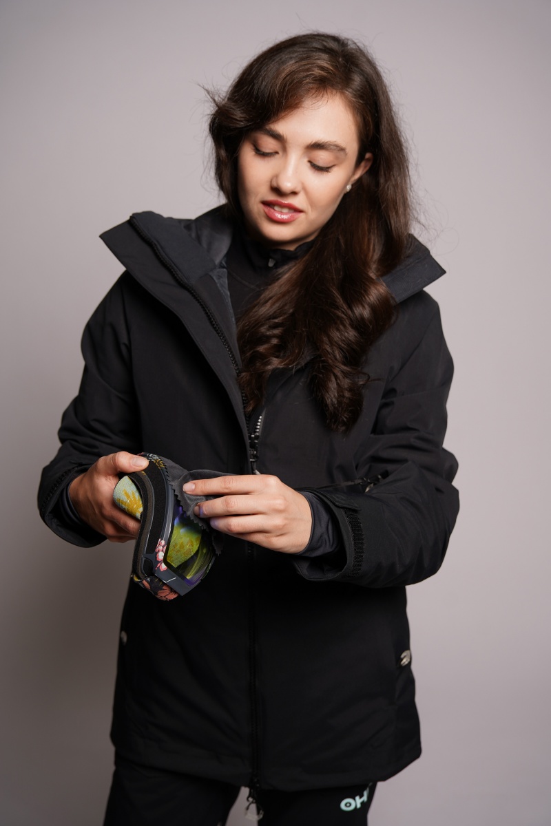 women’s hardshell jacket! This medium-insulated jacket in a sleek fit is ideal for downhill and cross-country skiing, as well as other more or less challenging sports activities in winter, allowing you to move comfortably. It won’t let you down on your way home from work or on walks. It can withstand wind and rain, and you’ll always be warm and dry.