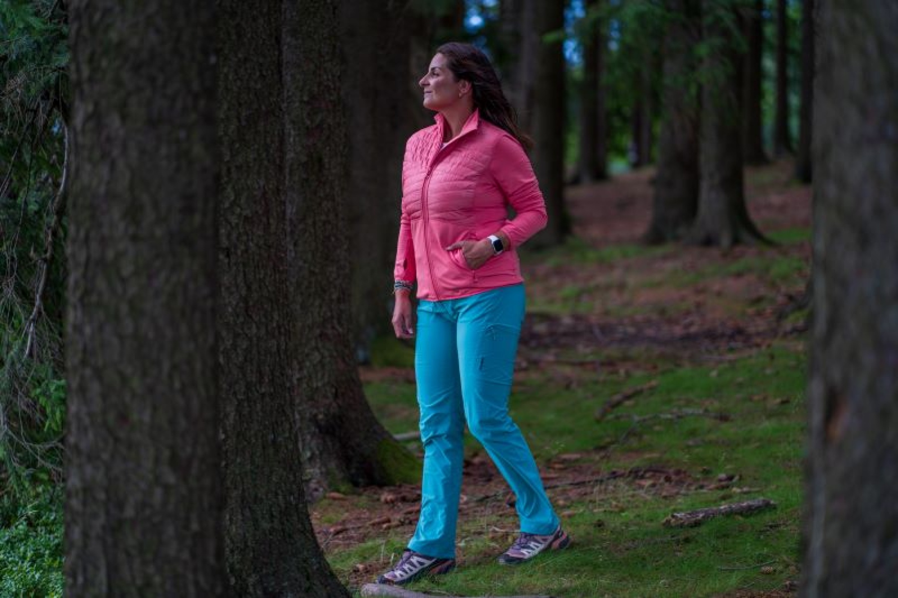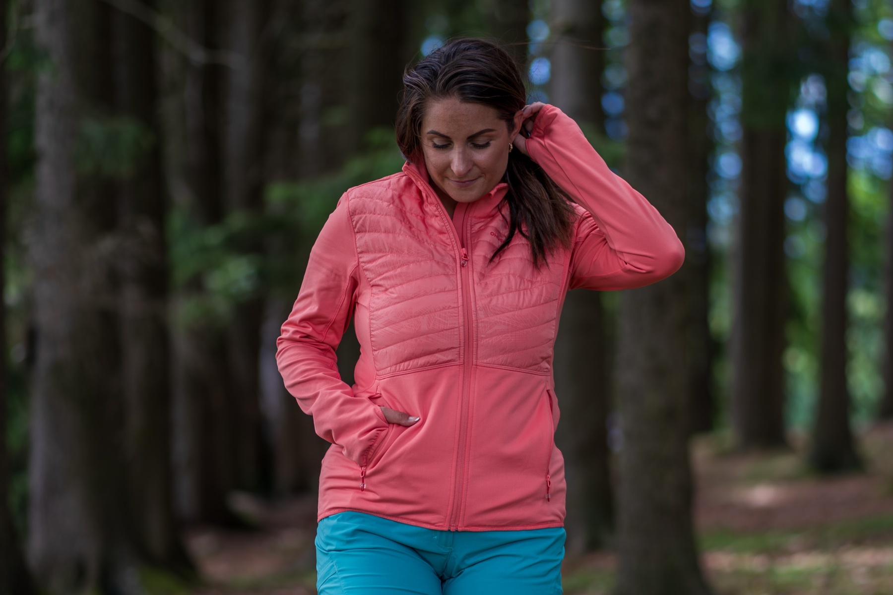 A women’s functional sweatshirt for various outdoor activities and everyday wear in colder weather.
